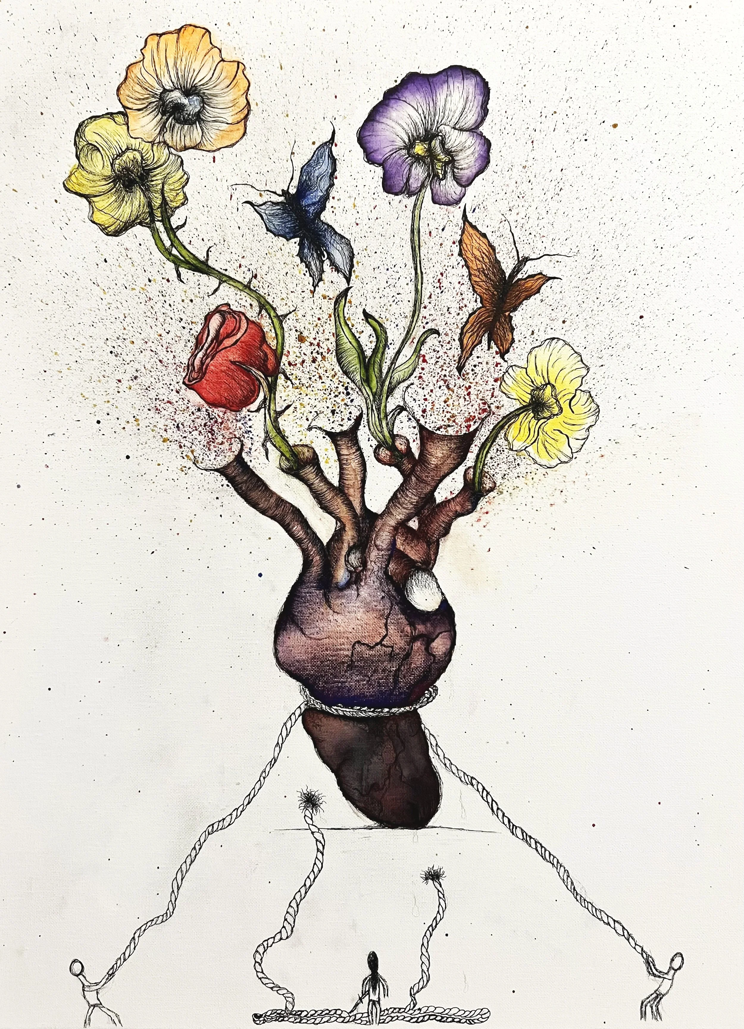 Medium: watercolor, charcoal, and sand